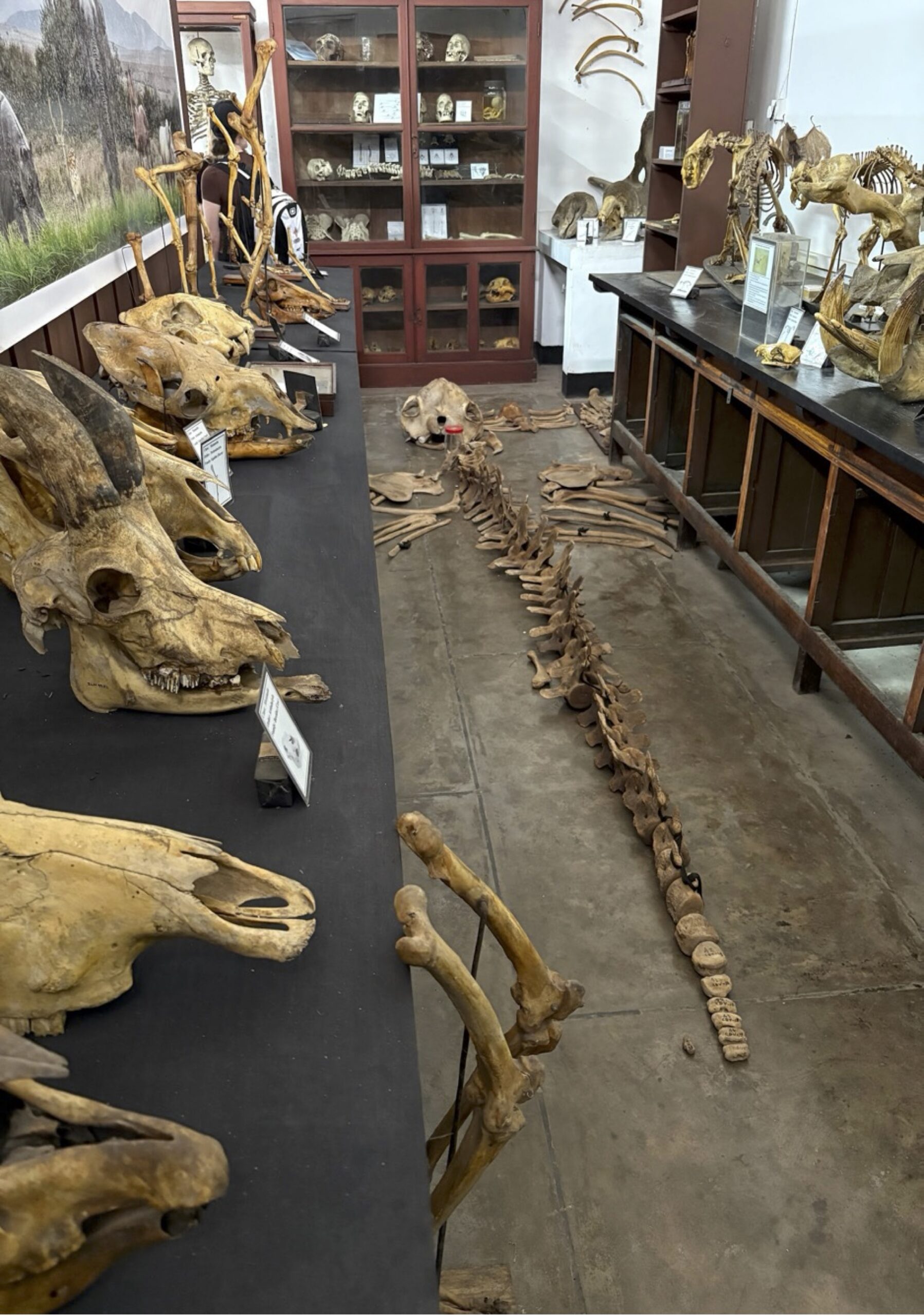 Starting off our first full day in Sri Lanka, we landed at 3:50am in the Colombo airport. We all managed to get through immigration, then collected our luggage and boarded our last form of transportation before arriving at the hotel (Morven Hotel Colombo). Little did we know, the long awaited rest was insufficient for the day that was to follow. After just 3 hours of sleep, we began our day with breakfast at the hotel. Many of us tried our first hopper (thin, bowl-shaped chick-pea flour pancake with an egg fried on the inside). We then hit the road at 11am and made our way to the University of Colombo, where we were greeted by Dr. Seneviratne, who is Dilini’s former undergraduate supervisor. He then gave us a tour of the zoological museum where we saw many skeletal exhibits including a whale that was under preparation and a variety of preserved specimens. Following this we took a walk around the university exploring the faculty of arts and the faculty of science. During this time, we observed several bird species and were able to identify them. The white-throated kingfisher posed perfectly for a picture! We gathered in a lecture hall to listen to Dr. Lougheed’s insights regarding new tools for monitoring impacts of Arctic climate on polar bears and other charismatic megafauna using non-invasive genomics-based fecal analyses. After the talk, we took the bus to Diyasaru Park to birdwatch in the wetlands. There were many stellar species that we were able to spot on our walk. These included the Grey-Headed Swamphen, Indian Darter, White-Bellied Drongo, Pheasant-Tailed Jacana and the Giant Flying Foxes, to name a few. After this long day we were all exhausted and ready to get back to the hotel, with several members of our group taking a lovely nap on the bus. Upon arrival, we had time to rest and then ate dinner at 7:30. We ended the day at the Treehouse rooftop bar, sharing drinks and laughs with newly made friends.