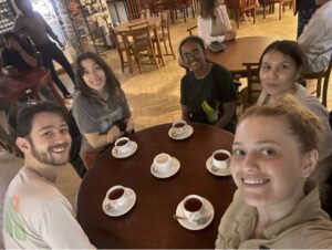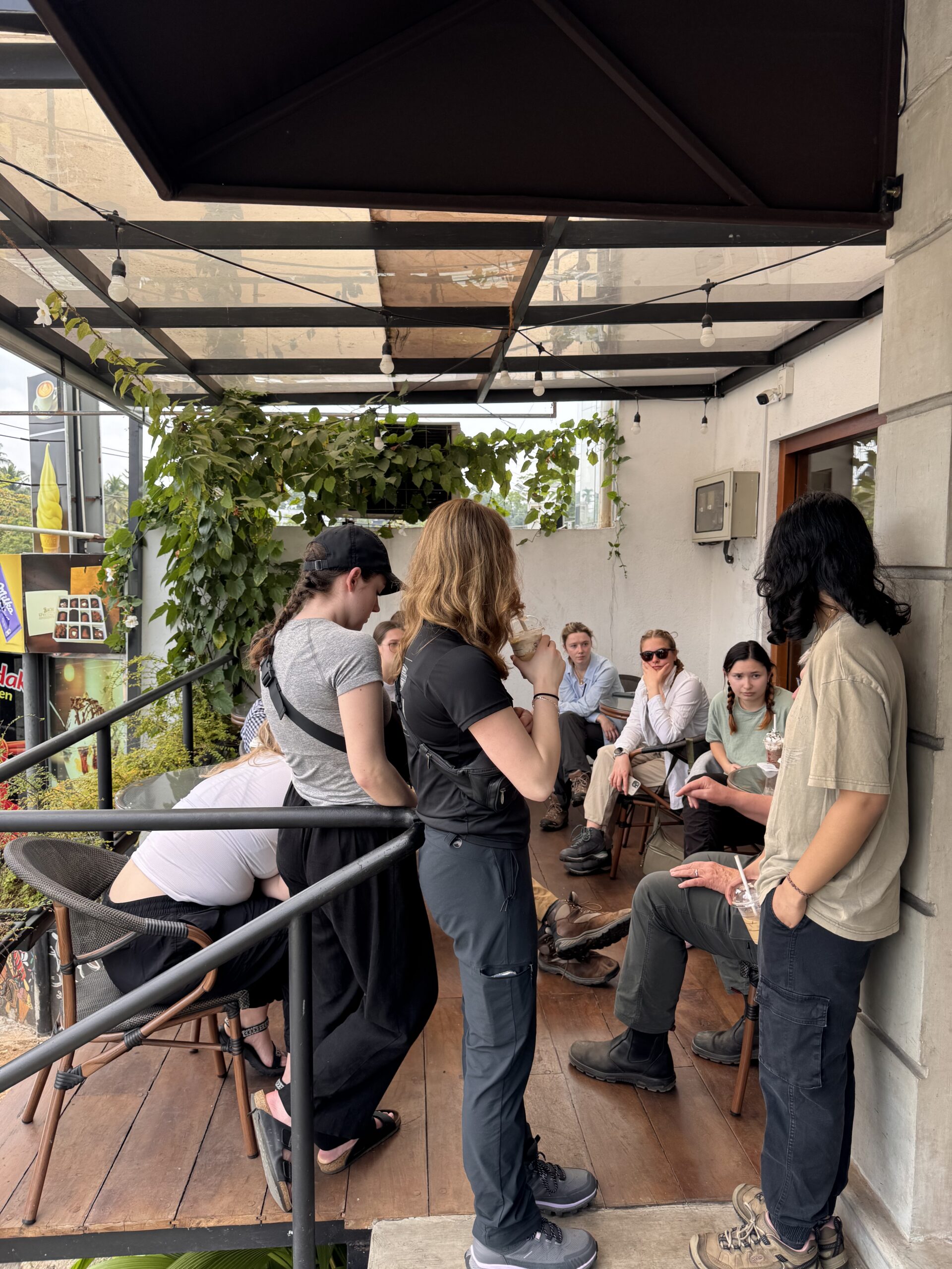Today, we are still recovering from jet lag! Some of us woke up very early between 4-5am and couldn’t fall back to sleep. Others had a rough time waking up. We had our last breakfast at the Morven Hotel consisting of delicious curry and pancakes. They offered instant coffee the taste of which some of us didn’t mind, but others preferred coffee straight from the coffee pot. So, Josh took one for the team and asked Steve if we could go out for coffee on the way to our first remote site in the rainforest! We packed up our things and hopped in the buses, mentally set for a 3-hour drive. We stopped at Java Lounge to fulfill Josh’s request and on the way, we picked up our Sri Lanka classmates and friends, Induja, RavinDi, and Kalindu from the University of Colombo. At Java Lounge, we ordered scrumptious frappes, iced coffees, fruit drinks, and more. Steve shared many travel stories! Before leaving the city, we stopped at a grocery store to stock up on snacks for the next few days. We were so excited to try some delicious Sri Lankan snacks! They had spicy peanuts, coconut wafers, and our class favourite, Tom Yum chips.