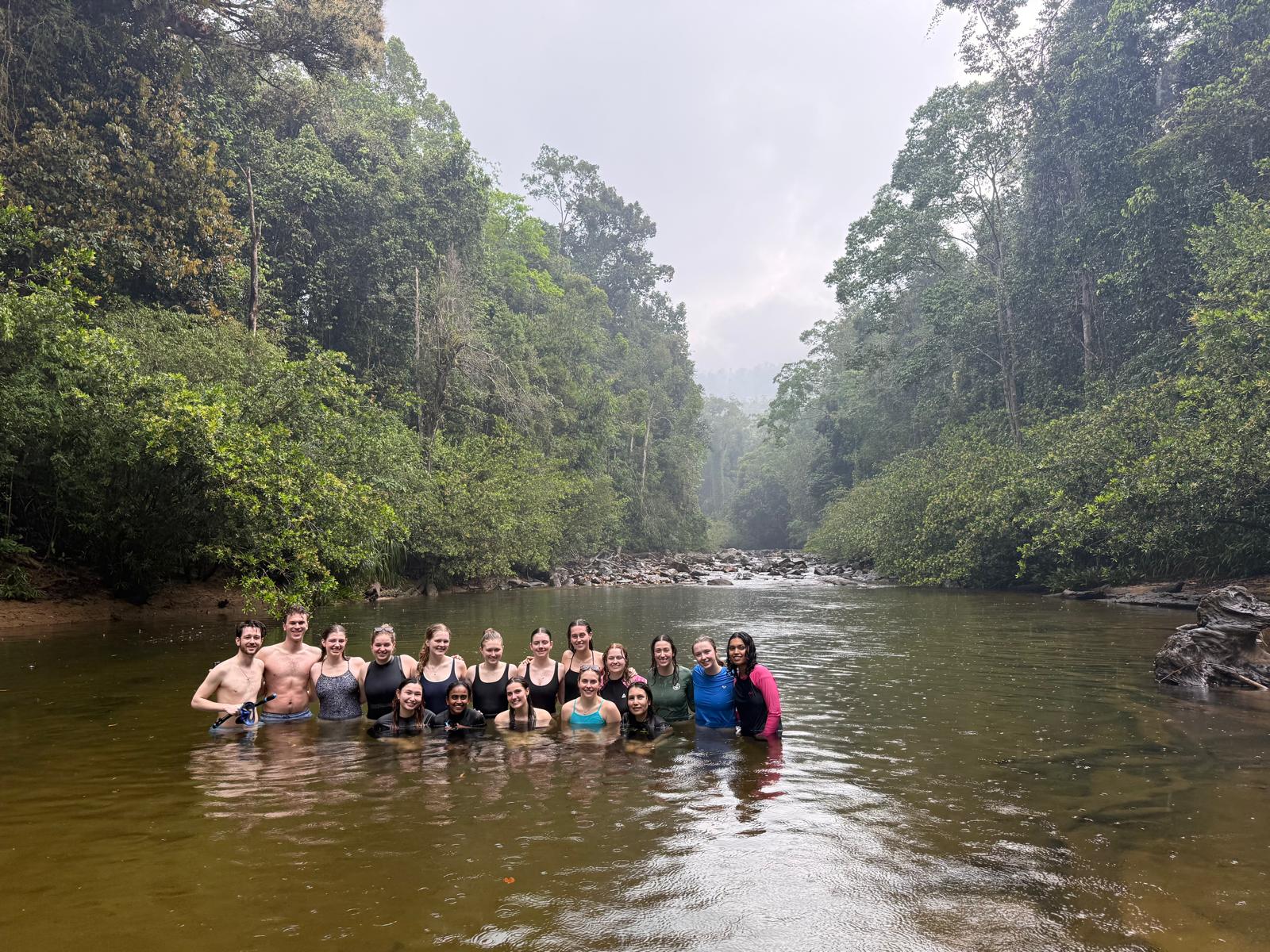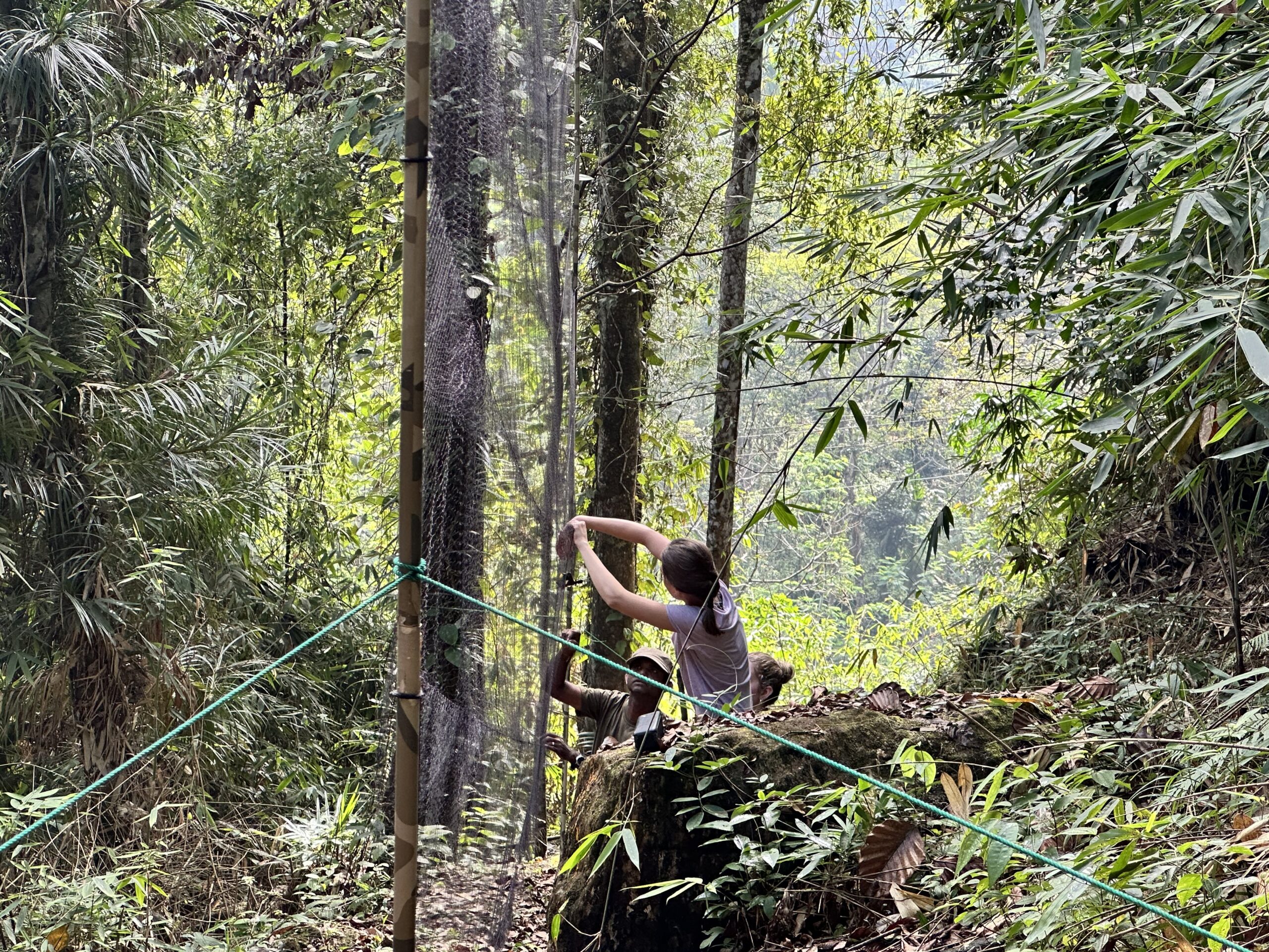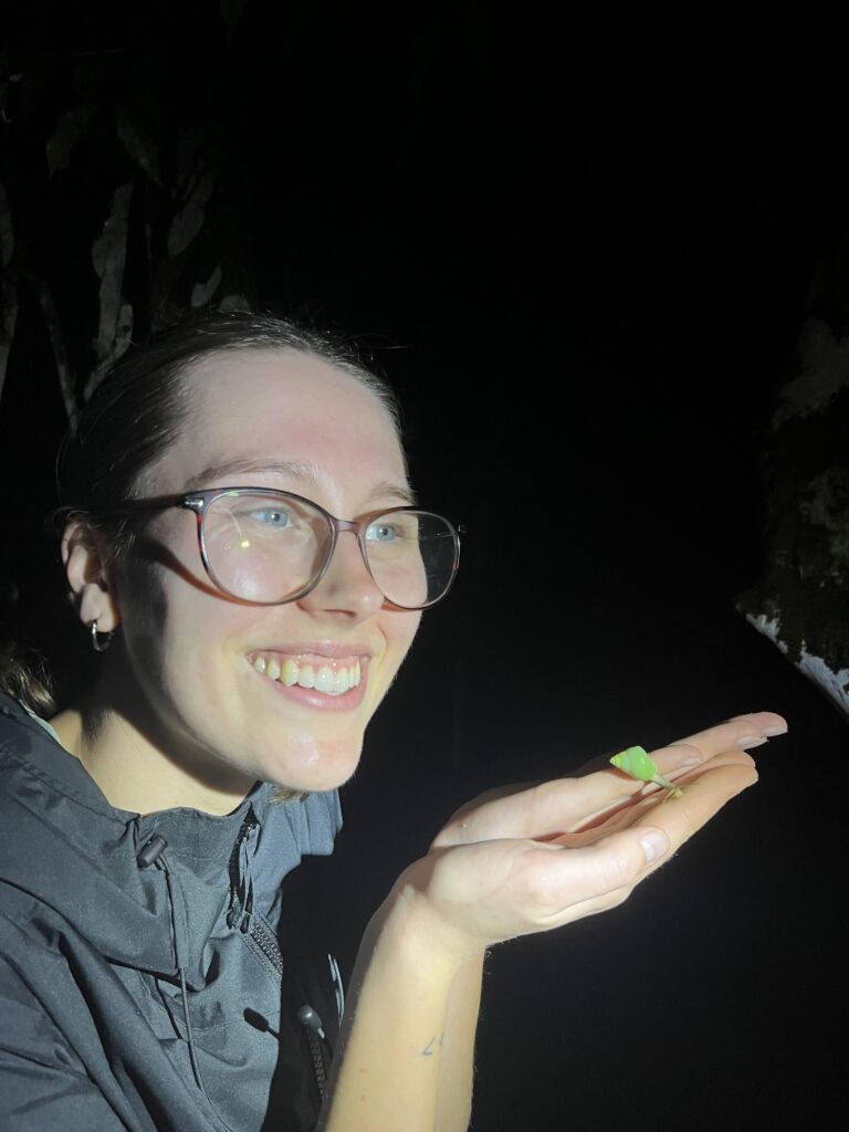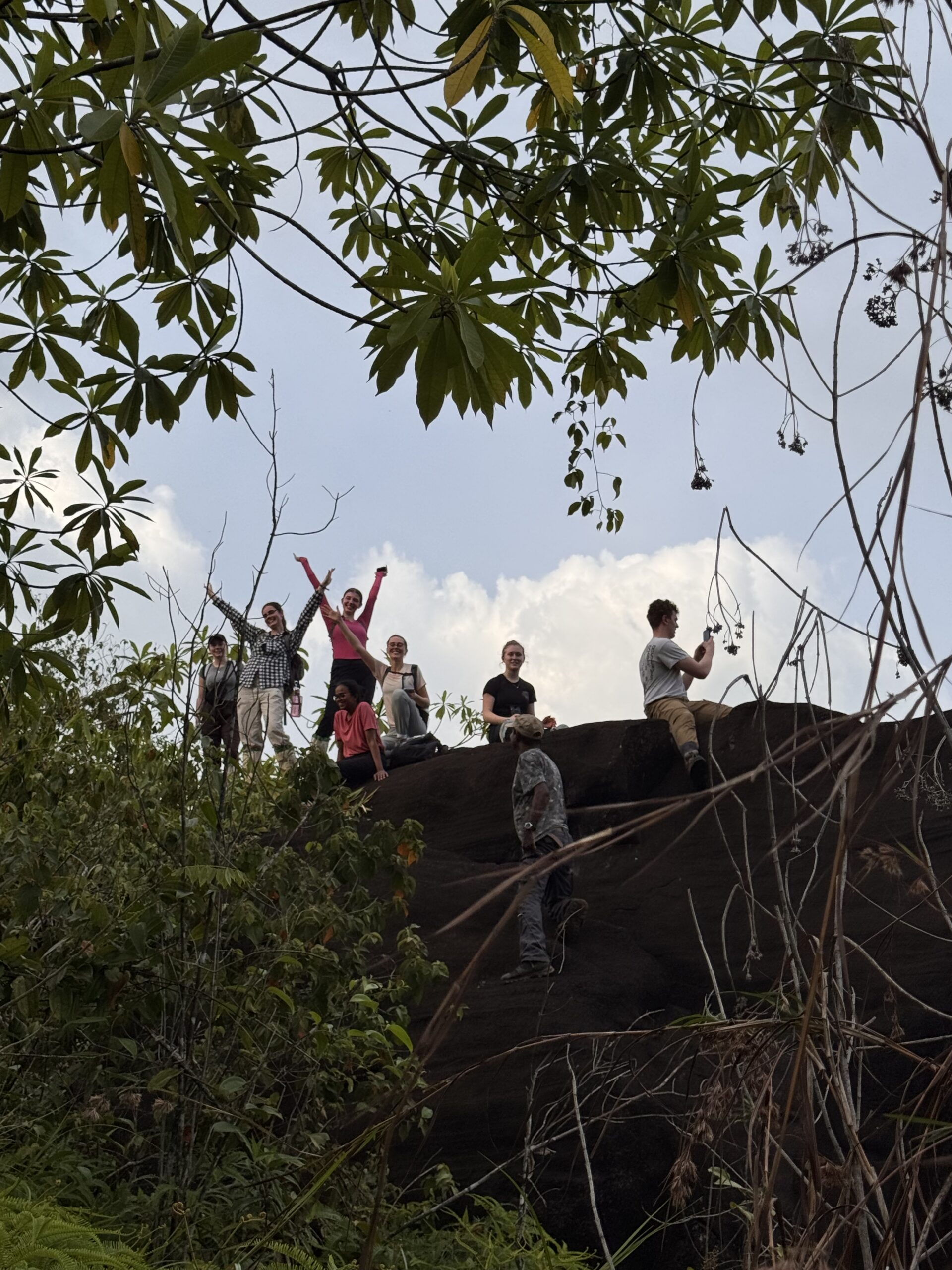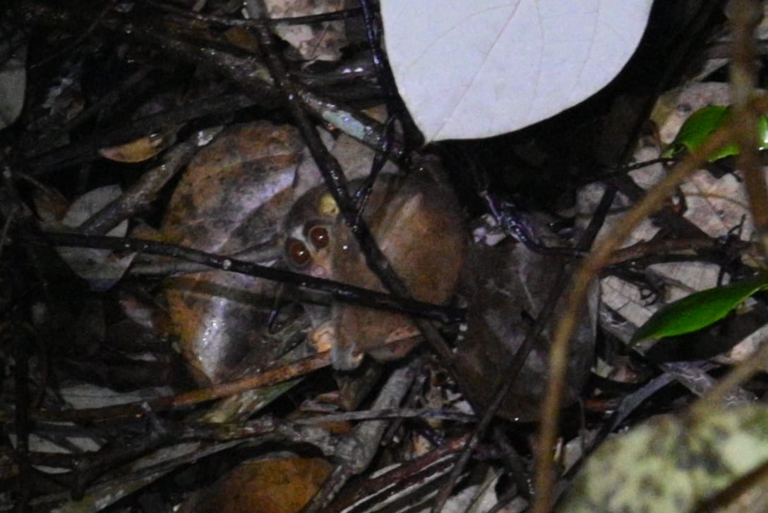 We started the day with the opportunity to see a Sri Lanka Bay owl, which was caught overnight by Sampath, Kalindu and Induja. We had some fresh Sri Lankan tea to fuel our early start (6:30am), before heading out to do some mist netting. We used different bird species sounds, played through a speaker, and also an owl call (as small birds do alarm calls and come close to the putative predator) to attract any birds towards the net. We caught a beautiful black-capped bulbul, which many of us got to hold. Afterwards, we headed back to the Runakanda Rain Forest Conservation Center for breakfast, where many of tried pineapple jam for the first time. Right after breakfast, we headed to the restoration site and climbed to the summit where the locals helped us to plant native trees. We had a very quick return to the centre to get changed, before we left once again for a much-needed swim at Maguru River. Our path to the swim site was rugged, with hiking across a river and over fallen trees, all while trying to avoid (unsuccesfully) the persistent land leeches. We split paths with Sampath and his colleagues when they found a Sri Lanka frogmouth nest, and went to set up a camera trap to monitor it for the months to come. Once we arrived to the river, we hopped in for a swim, and shortly after it started raining. The rain was very refreshing but left all of our stuff soaking wet!  On the way back, some of us got to see and smell cinnamon trees, then returned to the centre for lunch at 5:30pm. After lunch we got some time to rest (napping and working on our field books) until 7:15pm, then a group of us headed out (once again) for some evening herping in the Sinharaja rainforest after the rain. There were many amazing species spotted, including several species of shrub frogs, a green vine snake, a Sri Lanka kangaroo lizard, a Sri Lanka green pit viper, and a lyre head or hump-nosed lizard. We also got to see a red slender loris in its nest, apparently a very rare sight to see. Afterwards, we returned for the long-awaited dinner at 11pm, which was the traditional Sri Lankan dish, Kottu. That concluded our day, and we went to bed for a much-needed sleep after a long day of exploration.