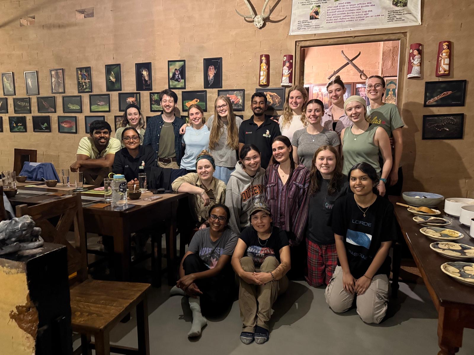 On February 23rd we started our day off nice and early at 4:30 am, with departure from the hotel at 5:15 am. We rose but I think we forgot to shine. The sky was dark and greeted us with a cool morning rain. With excitement for the day, we hoped into three vans as our typical buses would not suffice for our journey to Horton Plains national park. The majority of the ride was in darkness but the sun began to rise as we arrived at 6:30 am. The hotel staff were kind enough to pack us breakfast which we consumed before getting our tickets and bags checked. They don’t allow any plastic into the park except for plastic water bottles (as long as they have the label ripped off). Dilini explained to us that visitors tend to litter the labels throughout the park. I personally think that the no plastic rule should be adopted in our Canadian parks! We started our hike off at 7:30am and continued to mini worlds end. During our venture we were able to find 5 of the 8 species listed on the park information board. These included the Sri Lanka purple-faced langur, Rhinohorn lizard, Sri Lanka dull blue flycatcher, Sri Lanka yellow-eared bulbul and some of us were even lucky enough to spot the Sri Lanka whistling thrush among many other wonderful sightings. Also notably there were lots of pipits and we saw a pied buschat. When we got to mini worlds end we were in awe of the view that was presented before us. Valleys and hills full of lush vegetation, lakes and distant houses lit up the landscape. After snapping a few shots we all prepared to hike back to the buses. When driving out of the park we were greeted by a troop of toque macaques. Many of which were mothers carrying their young. Lunch was a mix of personal preferences prepared by Perera and Sons. Im not sure if it was the restaurant or the fact that we were very hungry but lunch tasted very good! Most of us enjoyed kottu, Mongolian rice or fried rice. With being just a short distance from the hotel we stopped at a cafe for some refreshments and continued on our return. The afternoon was filled with many insightful presentations. The first was a debate regarding debt for nature swaps and whether their effects are ecologically beneficial or simply greenwashing underlying concerns. Following this we listened to three seminars. We began with Meg who presented a seminar about how institutional pressures shape biodiversity management in Sri Lankan tea plantations, then Isabel who discussed the socioeconomics of biodiversity conservation in protected areas, and finally we ended with Josh who addressed the threats that oil-palm agriculture poses to biodiversity. After our academic evening we all rested and had a lovely dinner before heading up to pack our bags for our next journey!