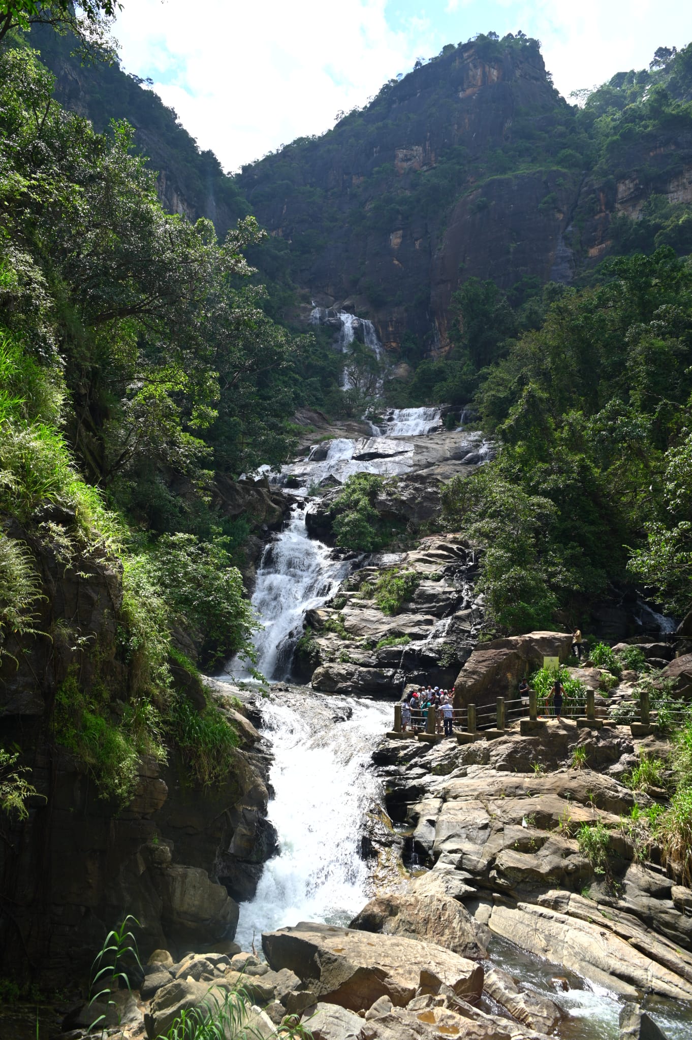 We slept in. We packed up the buses and left Nuwara Eliya at 10AM. Travelling through many winding roads, most of us observed the beautiful landscape while others were once again made a little carsick by the winding mountain roads. Lunch was waiting for us in a touristy town called Ella, where lots of recognizable items were on the menu. Continuing our journey, we stopped at Ravana waterfall along the edge of the highway. The waterfall is named after a mythical King from a well-known Sri Lankan legend.