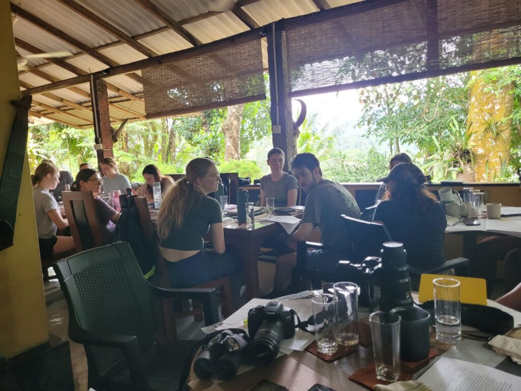 For the rest of the morning and afternoon, we sat in on seminar presentations and one debate. First, Ciara discussed the potential impacts of climate change on reptiles in the tropics, based on a meta-analysis published in Frontiers in Ecology and Evolution. She highlighted potential impacts on embryonic development and physiology, including changes in precipitation, salinity, and temperature. Rising temperatures, rising sea levels, and altered precipitation patterns may negatively impact endemic reptile species in Sri Lanka, resulting in habitat loss, physiological heat stress, changes in embryonic development, and shifts in species distribution.
