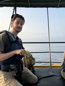 After we had passed Sri Lanka’s famous coastal shelf, we received the greatest treat: pilot whales. Our boat raced toward the call from nearby vessels. In the distance, they were manoeuvring separately, trying to catch a glimpse of these behemoths as thirty-odd whales dove for squid undertaking their daily vertical migration. We finally joined the party. For over 30 minutes, we watched as the pod resurfaced for air, caught their breath, and rolled into a dive—water streaming off their tails on the final descent. Then we would set our timers and keep watch until, ten minutes later, the pod emerged again. It was incredible.