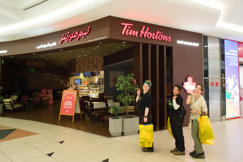 Monday March 2nd 9:00am, after checking in yesterday sleep came quickly, the beds here are leagues above what the airport had to offer. Apart form waking for meals and a couple games of cards organized by Vanessa and Aili most of us slept have slept for almost 24 hours stright. Catching up on the sleep deficit accumulated during our adventures in Sir Lanka. Yesterday, in the interest of a quick and unhindered exit we chose to leave our checked bags in the care of the airport thus, creating our next most pressing issue: the need more more undergarments. With my fellow grad students Meg, Andy and Victoria we embarked upon a small expedition to a local mall which we knew to be home to stores such as ‘Brands for Less’ (similar to Winners) and ‘Carrefour’ (similar to Loblaws back home). On top of everything else we are here during Ramadan, a time of celebration and fasting for muslim people. If there was no conflict, visiting now would be an ideal time to experience the muslim culture! The 20 minute walk to the mall was mostly along a wide 3 lane boulevard surrounded by well watered hedges and trees. We couldn’t help but get some bird watching in as we noticed Common mynas and White-eared bulbuls inhabiting this stretch of road. We also couldn’t help but notice the trees in a park on our walk to the mall were labeled with their species name. Our inner biology nerds were ecstatic. As with everything we have thus far experienced in this country this mall found a way to elevate all the sights you might expect: a grand atrium opening up to four stories of shopping, with ornate decorations encrusting a dome of glass, all surround an expansive children’s play apparatus. Every store was open but some were busier than others with shoppers favoring a hunt for the essentials. We browsed the racks of ‘Brands For Less’ selecting many sets of undergarments for the group, for ourselves we chose a couple new shirts and I even chose a fancy new pair of purple crocs! Along with tums for Steve the Carrefour sold an arrangement of shirts aimed at tourists with the words ‘Doha Qatar’, these we of course bought to commemorate the sudden experience we have had so far. Due to Ramadan all the restaurants and coffee shops we passed within the mall are closed apart from one, Tim Hortons of course. Before leaving the mall we all picked up a taste of home, but by law our coffees had to be covered with paper bags until we returned to our hotel. Our group of 17 ended the day with a surprise birthday party for Alex Bandt. During a second outing to the mall birthday essentials such as candles and balloons were gathered by Aili, Claire, Alex Beer, and Vennila ensuring this was a special event. Even room service happily provided a chocolate brownie to help us celebrate!